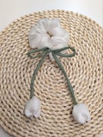 Our premium White scrunchie, adorned with two gorgeous tulip - like ribbon details, is the perfect way to add a sweet, stylish flourish to any look.